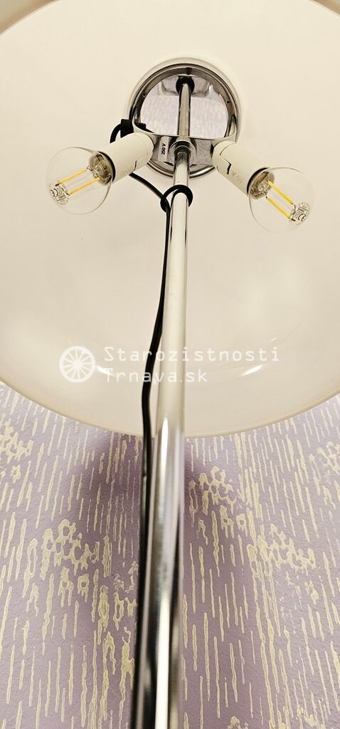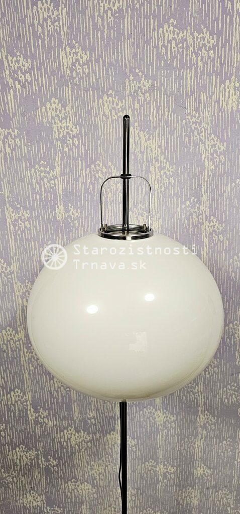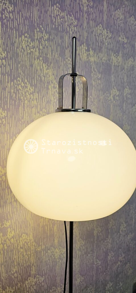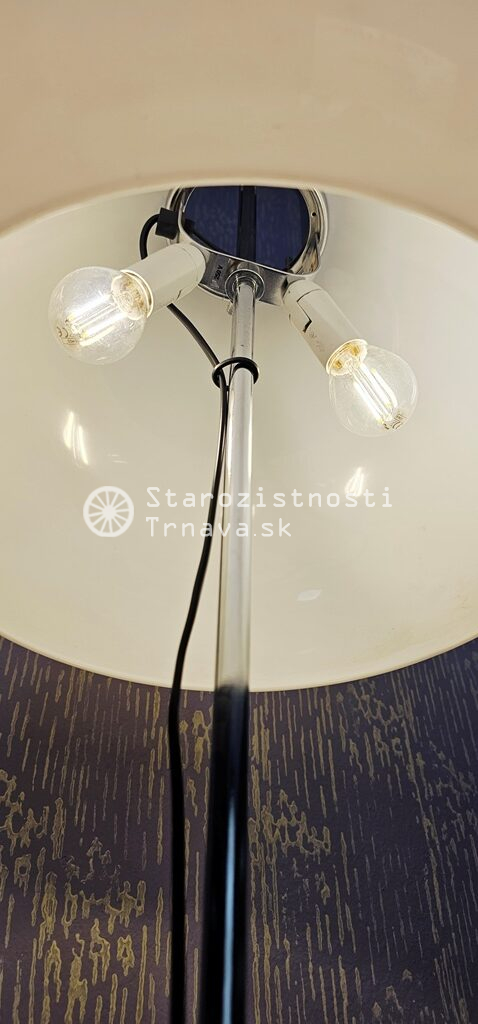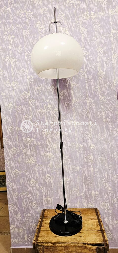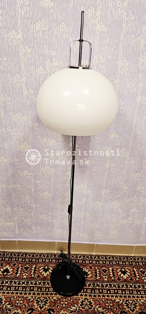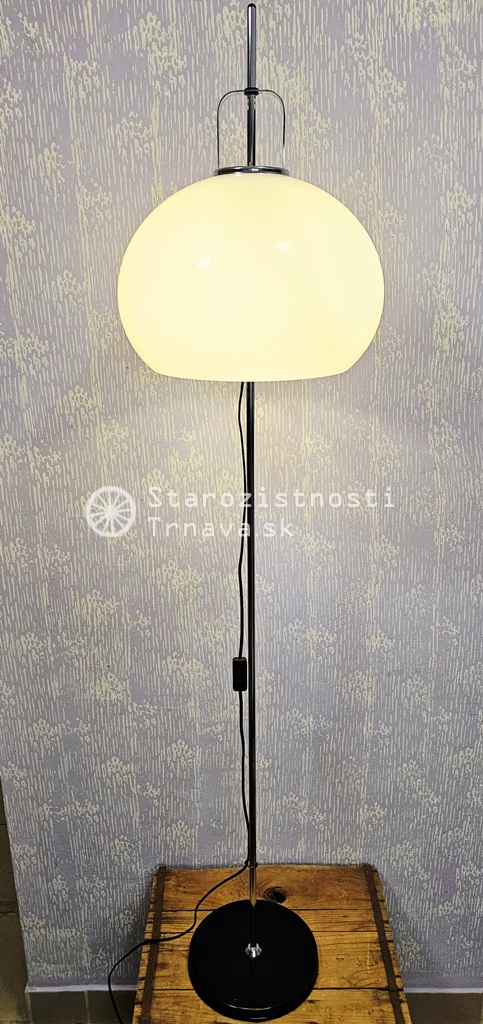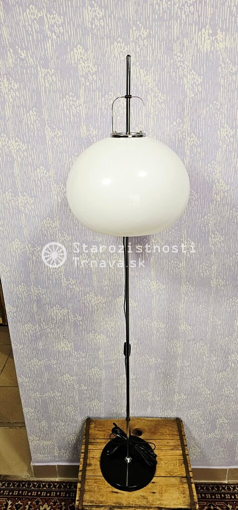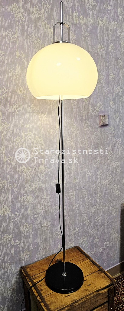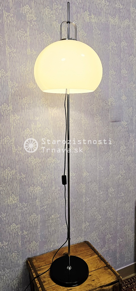 ikonická retro biela podlahová lampa Meblo od spoločnosti Harvey Guzzini. Návrh Luigi Massoni , nová kabeláž + objímky + žiarovky , výška cca 152cm